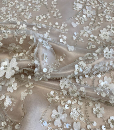Embroidered lace with beads and sequins.