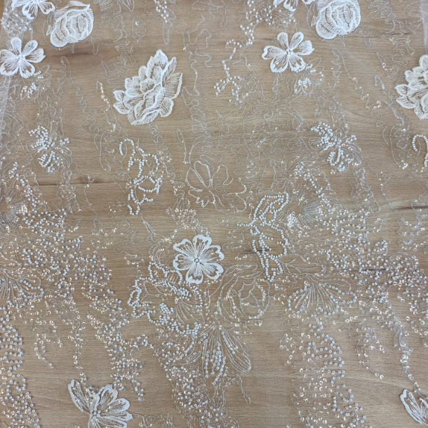 Embroided lace with beads and sequins.